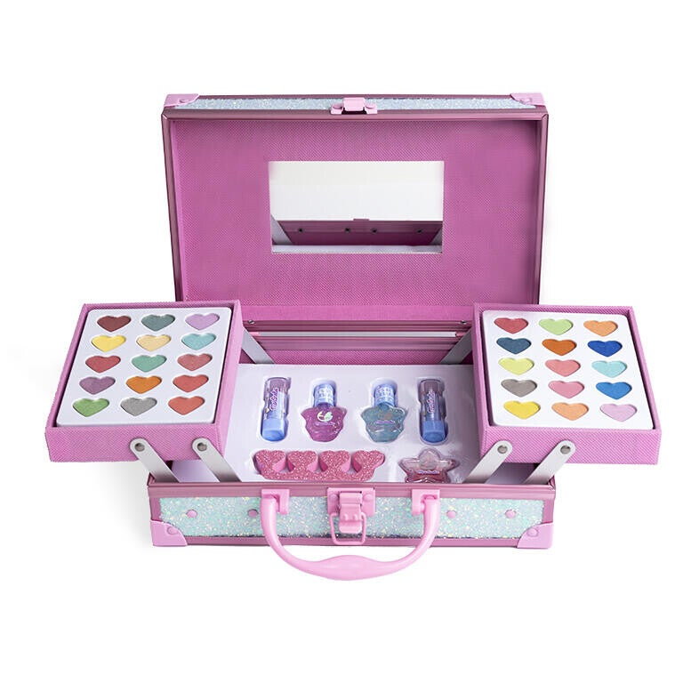 Zit als een zeemeermin met deze holografische make-upkoffer met zeethema, die alles bevat wat je nodig hebt voor de beste look. De set bevat 30 oogschaduws, 2 lipsticks, 2 nagellakken, 1 lipgloss pot, een teenseparator en een spiegel.
