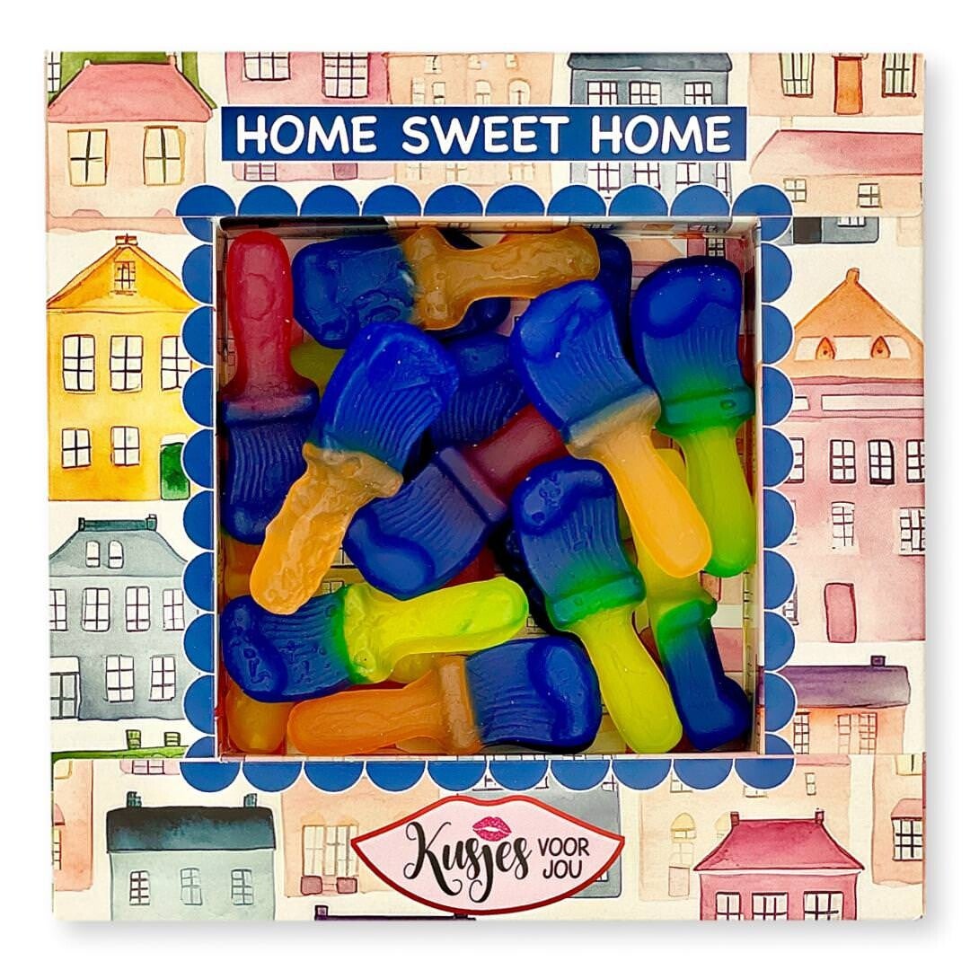 Snoep cadeaubox verfkwasten met tekst 'Home Sweet Home'.