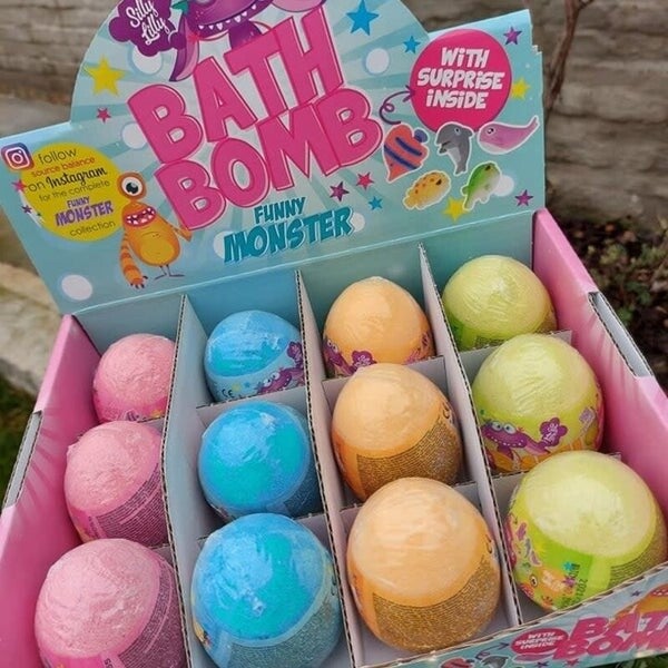 Maak van badderen een magisch moment met de Funny Monster Bath Bombs laat de bruisbal in het water vallen en geniet van een explosie van kleur en geur maar dat is niet alles binnenin zit een verrassingsfiguurtje
