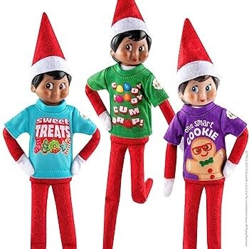 - De set bevat drie T-shirts voor de elf: "Sweet Treats", "Goody Gum Drops" en "One Smart Cookie".