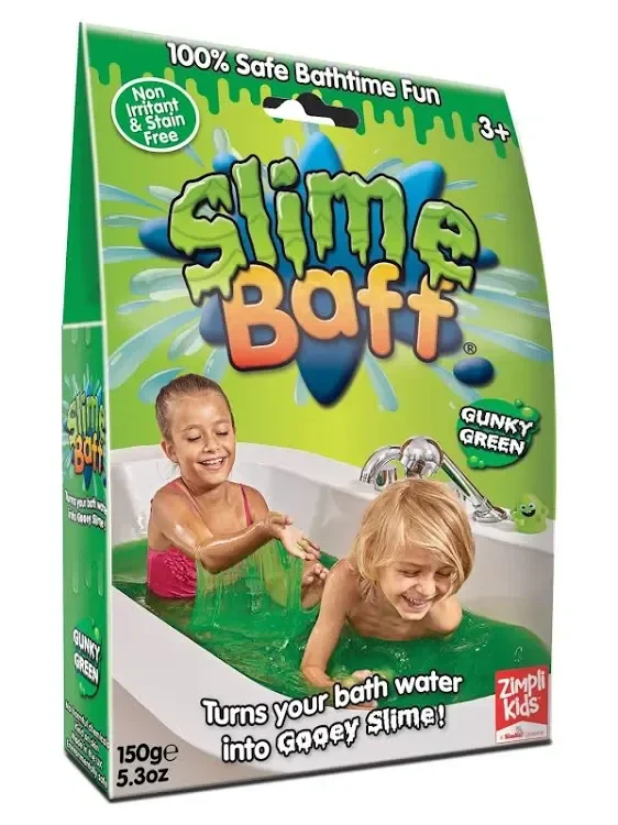 Slime Baff maakt van je badwater op een veilige manier een kleverig, knus bad vol slijm. Door gewoon meer water toe te voegen, kan het slijm worden verdund tot gekleurd water dat gemakkelijk kan worden afgevoerd. Slime Baff is verkrijgbaar in een reeks spannende kleuren en effecten en is het perfecte product voor rommelig en multisensorisch spel!