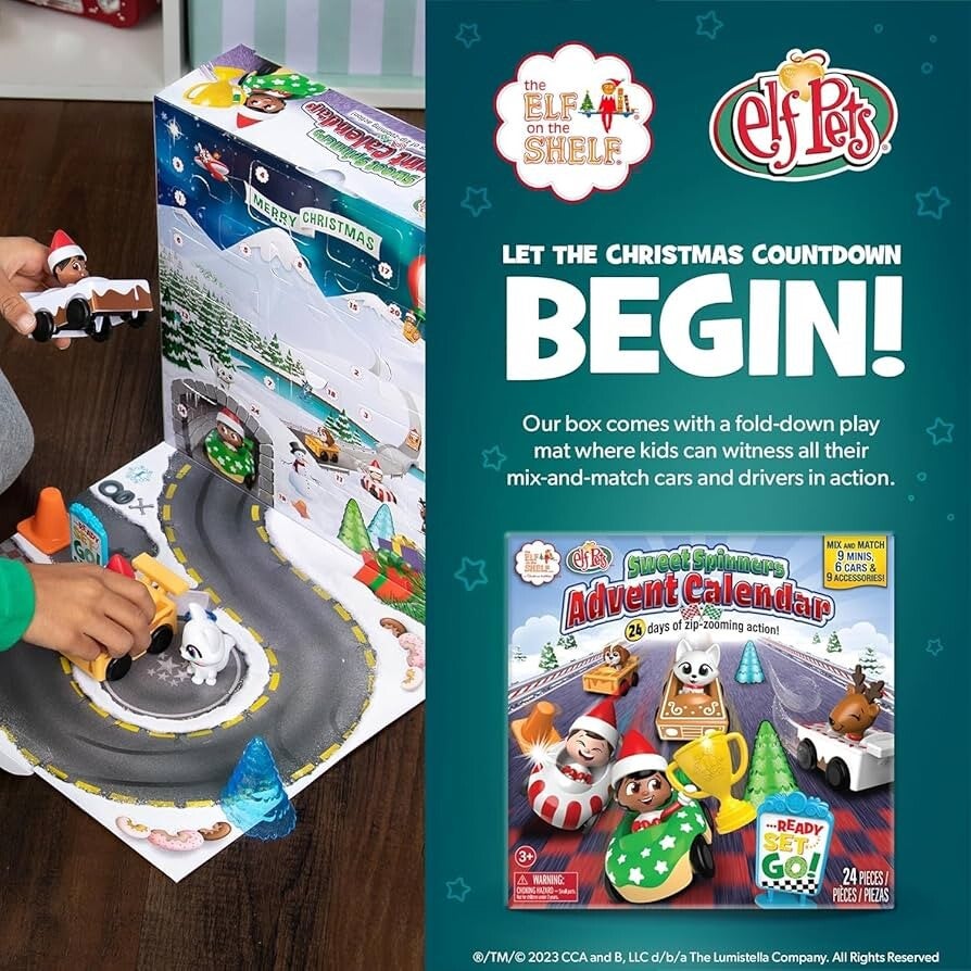 De Sweet Spinners Advent Calendar Elf Pets is een adventskalender van het merk The Elf on the Shelf. Het is gevuld met speelgoedfiguurtjes van de bekende Scout Elves en hun Elf Pets, plus kleine voertuigjes en accessoires.