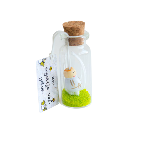 Een super leuk geluksflesje, een engeltje vol geluk! Zalig om dit cadeau te doen en vooral om het te krijgen!