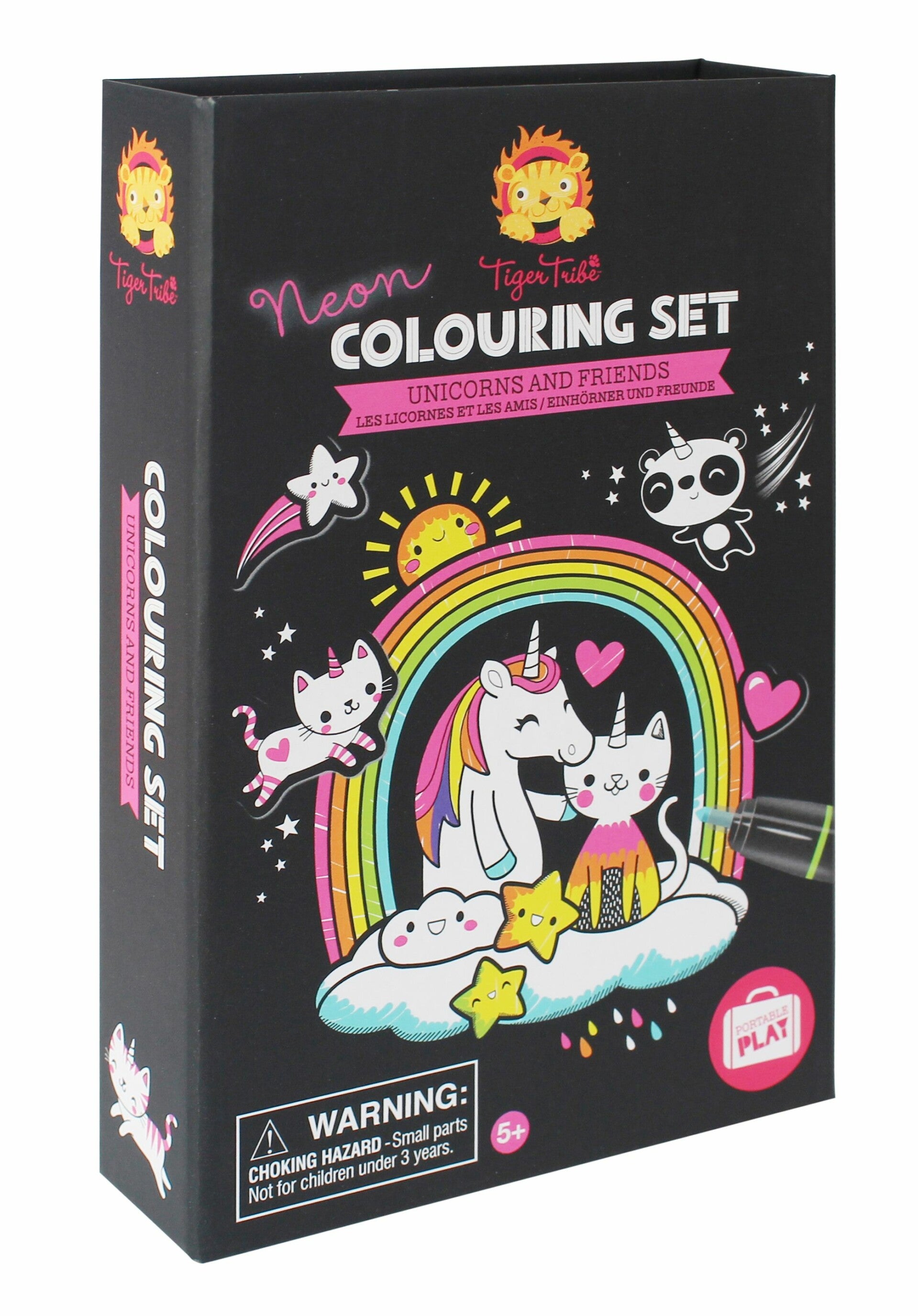 Deze creatieve kleurset voor thuis en onderweg, bestaat uit 36 kleurplaten, 3 dubbele neon stiften en 5 stickervellen. Dankzij de zwarte achtergrond krijg je in combinatie met de neon stiften een heel bijzonder effect.