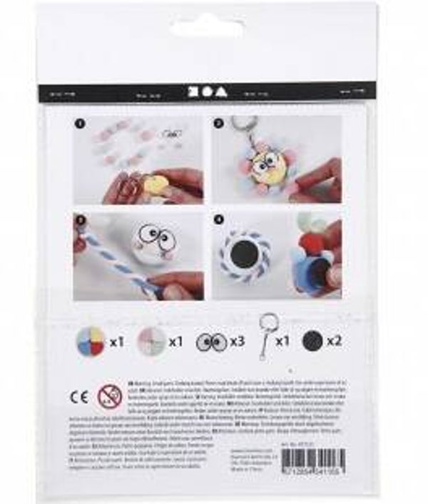 Inhoud: sleutelhanger, magneet, zuignap, Silk Clay in 8 kleuren en grote ogen .