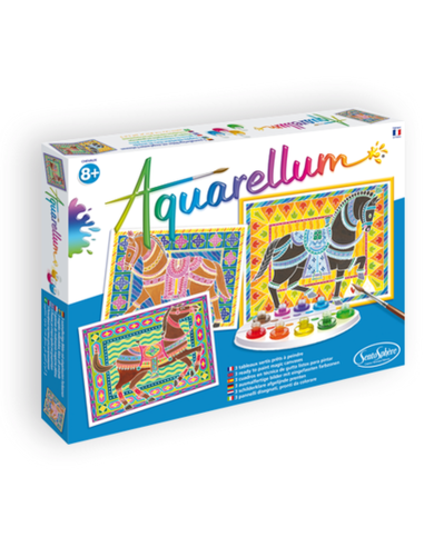 Met een paar verfstreken kun je een meesterwerk maken! Aquarellum Junior is verven op vloeipapier, de verf blijft hierdoor alleen in de voorgedrukte stukken: Je ziet het sjabloon verschijnen als je met de borstel de verf aanbrengt.