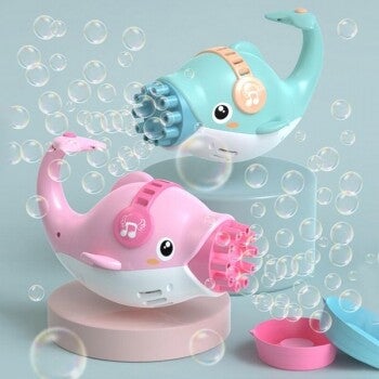 Super leuke dolfijn bellenblazer. Door de 10 gaatjes heb je een geweldig effect als de belletjes er allemaal uitkomen! 3 AA-batterijen