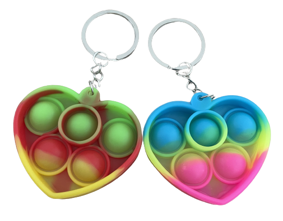 De meeste Pop its zijn gemaakt van stevige siliconen vlakken met daarin bubbeltjes om in te drukken. Deze versie – de simple dimple – bestaat uit twee wat grotere bubbels om in te drukken met daaromheen een stevige kunststof behuizing.