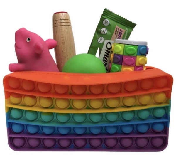 Super leuke pop it rainbow pennenzak, kan ook als toilettas gebruikt worden.