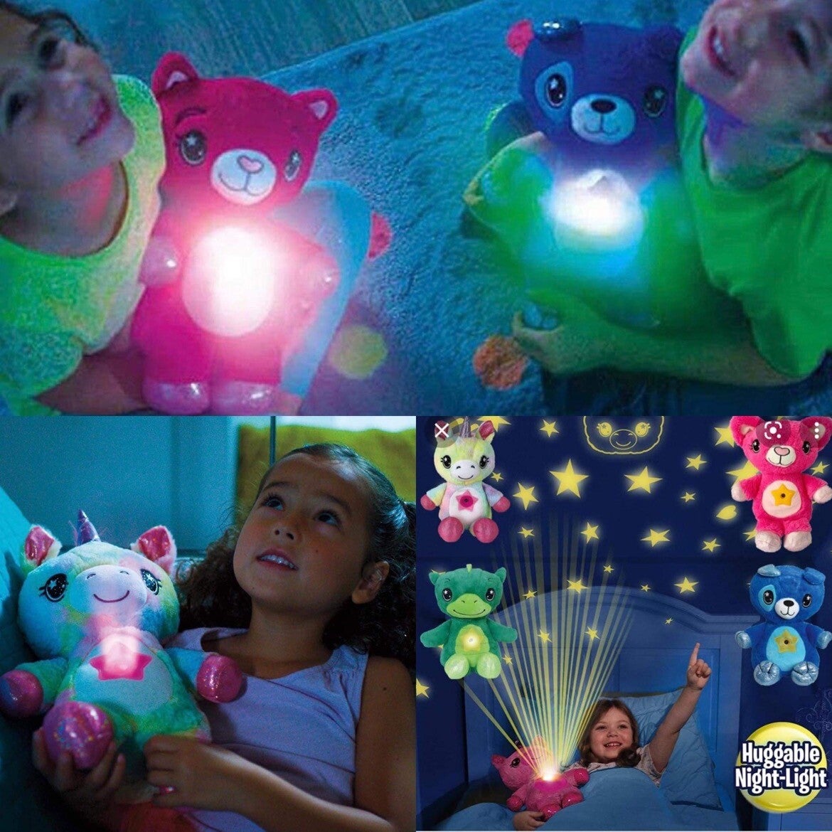 . Het knuffeldier projecteert een sterrenhemel in tal van kleuren op plafond en muren