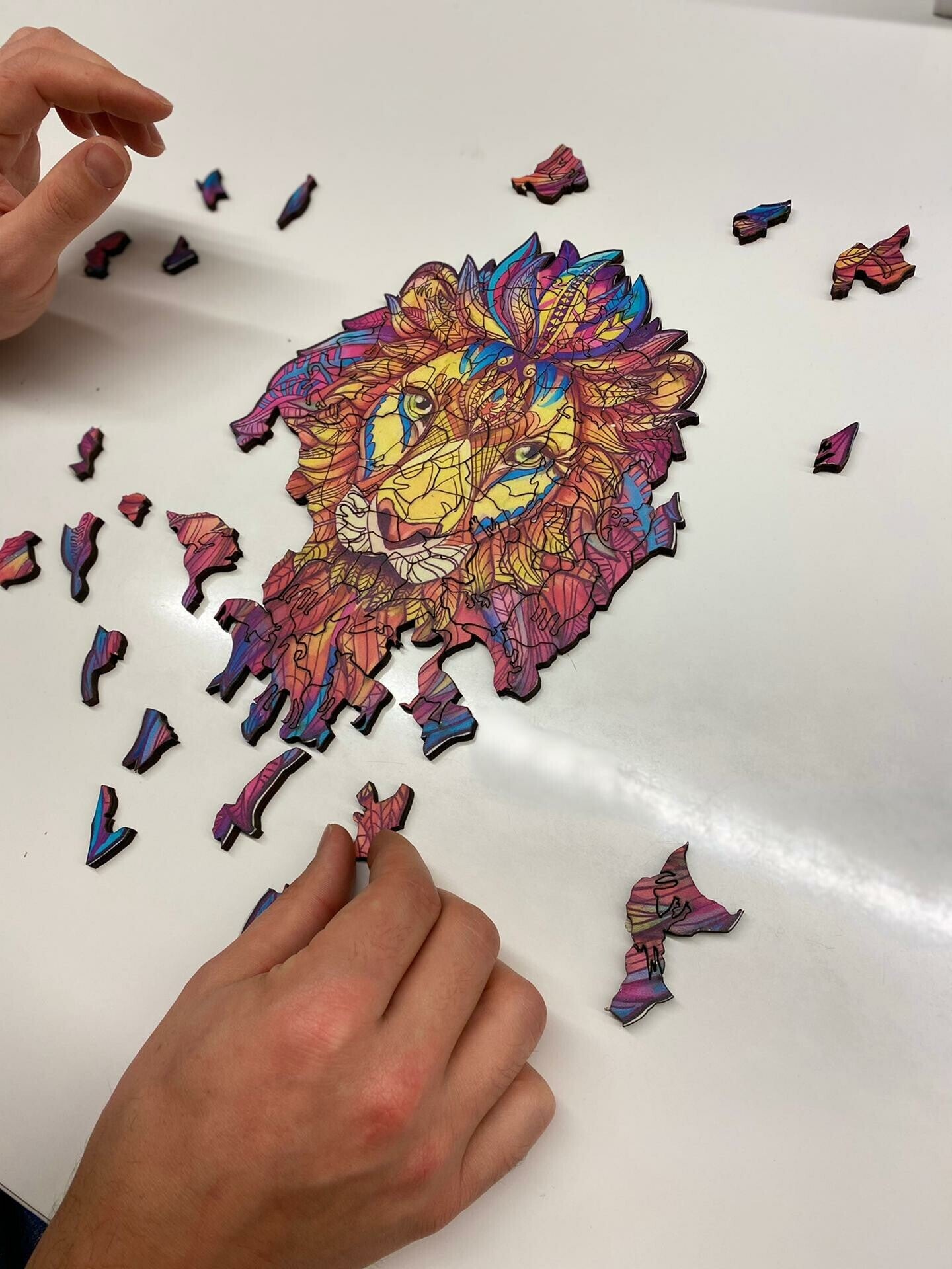 Super leuke en mooie leeuwen legpuzzel. Verschillende stukjes van de puzzel zijn ook echt dierenstukjes.